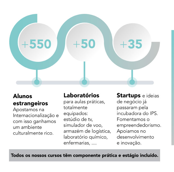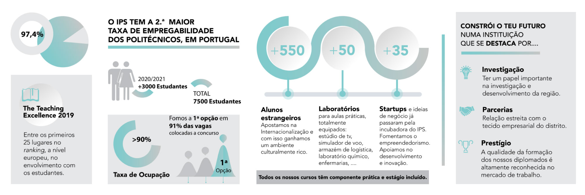 Estudar e viver em Setúbal é muito natural. Pela experiência de 40 anos a formar os melhores profissionais. Pela inovação e empreendedorismo que se traduz em dezenas de empresas criadas e liderança em grandes projetos de investigação europeus. Pela criatividade e talento que desenvolvemos e aperfeiçoamos em conjunto. Pela localização numa região escolhida por algumas das maiores empresas internacionais. Simplesmente, porque acreditamos que é possível ser melhor todos os dias. Estudar e viver em Setúbal é ganhar asas para o mundo. Juntos fazemos o amanhã.
